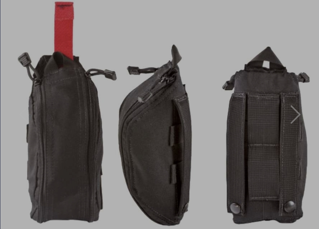 De kit heeft een uniek, afneembaar velcro binnenpaneel dat kan worden aangepast om verschillende componenten te dragen en biedt gemakkelijke toegang tot uw IFAK-inhoud door eenvoudig aan het kleurgecodeerde tabblad te trekken om het paneel uit de draagtas te verwijderen. Het compacte formaat vermindert de ruimte die nodig is voor een IFAK op uw vest of riem