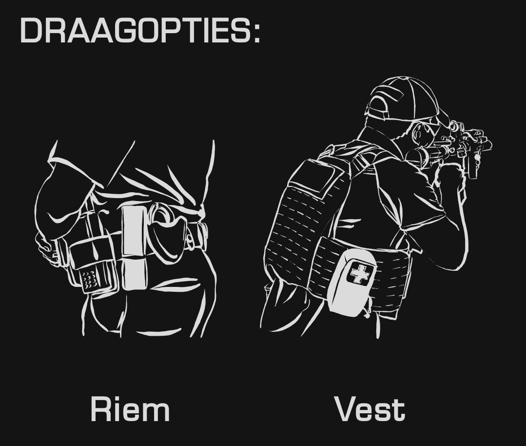 - Tourniquet NAR CAT Gen7 (1 stuk): een medisch hulpmiddel om de bloedsomloop af te sluiten en zo ernstige of massieve bloedingen aan de ledematen te stoppen.